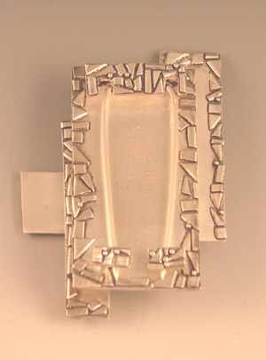 Well, my final project for school is done. And only one week ahead of schedule! Hey Greg, I bet you wished I turned in my stories that early. In typical over achiever mode, I made not one, but two brooches for the project. The assignment was to create a brooch that paid attention to the front and back, had a clasp that worked perfectly and was aesthetically pleasing. I do think I achieved all that. The reason I have two pieces is not that I’m an over achiever (which I am) but that I had some silver I attempted to fold form that cracked and split due to overheating. Since I didn’t want to waste a big chunk of silver, I managed to be inspired by the cracks and turn it into something beautiful. I’ll let all of you be the judges.