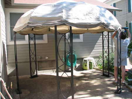 We considered calling the neighbors over to help lift the top, but somehow we managed to do it ourselves. Please note, no marriages were harmed in the making of this gazebo.
