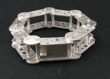 I did take some time last week to finish my latest project for school. The assignment was to take a mechanism and create a necklace or bracelet. Mine’s based on a bicycle chain. Here’s a view of it from the top: