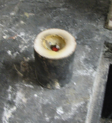 Next, the flask is put aside for a few minutes until the button, which is extra silver, isn’t red/orange any more. Please excuse this photo as I was trying to cast and take pics at the same time! The orange spot on top of the flask is the button.