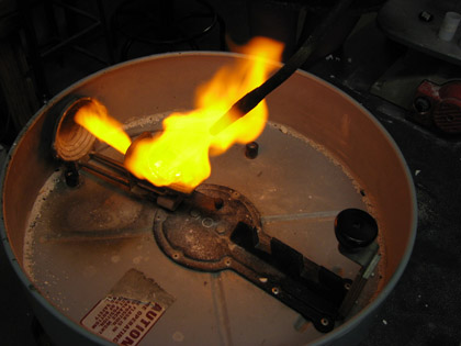 Next, is my favorite part of casting: melting metal. Molten metal is a beautiful thing. It’s mesmerizing to watch solid silver turn liquid and I never tire of it.