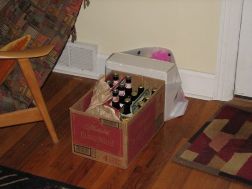 Finally, here’s the pile by the front door. Now, in her defense, I did put the beer there so she wouldn’t forget it. You know, priorities!