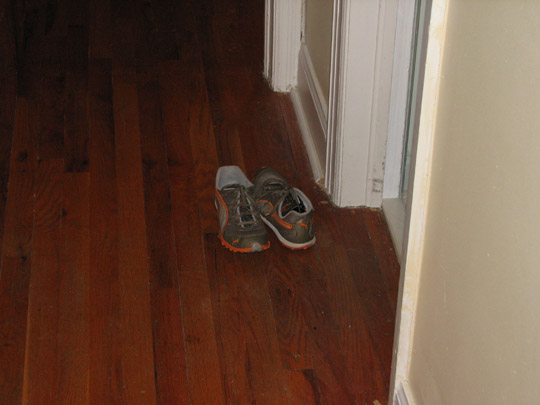 And because she tends to leave a trail, including Lydia’s socks she left in my car, here are her shoes in the hallway right outside the bathroom:
