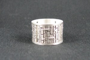 Yesterday I finished my first piece for class. It’s only a sample since the first assignment is to combine granulation with stone setting. I decided that since I’d done a couple of granulated bands, I’d try to create something different. The piece is four granulated sections that are curved. They set apart so you can see your finger through them. I was really pleased with the outcome, but not happy that it didn’t fit the finger I originally sized it for! This is why I’m taking this class, to learn about creating rings and how to size them properly. Granulating four sections was easier than on a solid band, but putting them together was tricky. The hardest part was keeping the walls from falling over when I soldered them. One did fall, but I managed to rescue it before the solder flowed.