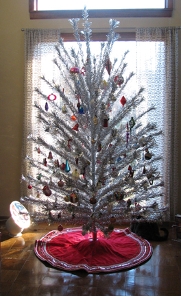 When I was a kid, we always had live trees. Even when I was living on my own, I managed to drag home a live tree each year. The first years of our marriage included live trees, but they were finally pushed aside when I received my first aluminum tree. It was a small 6 footer, but we loved it. The first year we lived in our current house, I managed to score an 8 foot aluminum tree off eBay and concluded we would probably never had a live tree again.