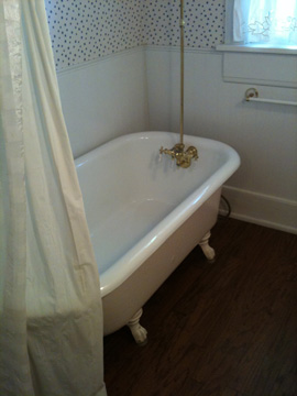 Bwahahah! You can’t get rid of me that easily! Although I have to say that turning my bedroom into a place that holds clothing and shoes is actually fitting considering the size of my own wardrobe! Here’s a look at the master bath which used to be the attic:
