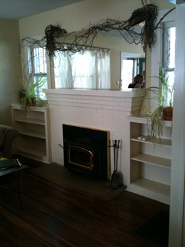 The most noticeable thing when I walked in the front door was the lack of gold shag carpeting. We always knew there were hardwood floors underneath, but we never got around to ripping out the carpet and refinishing them, even though my dad owned all the equipment to do that. The living room spans the front of the house and has a fireplace on the left side and a living area on the right which is where we always put the Christmas tree. Sadly, the brick on the fireplace has been painted white and someone removed the doors to the book shelves. And don’t get me started on that viney crap over the mantle.