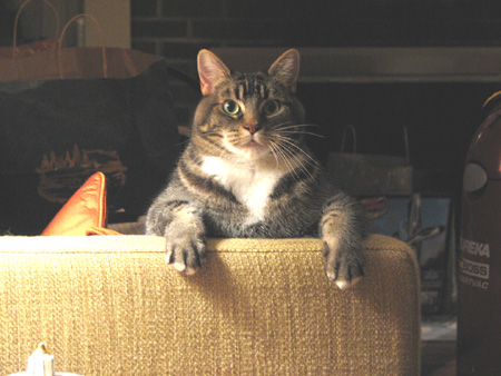 This morning I’m posting from our new computer. Steve, ever the computer wizard, scored a great used Mac from work which replaced our old eMac. We do love a good bargain! This one (and I don’t know the model) has a flat, adjustable screen and takes up much less space on the desktop. Plus, synching my iPod now takes about 1/4 of the time! Very cool.